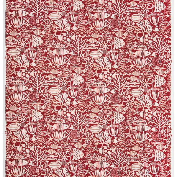 - Tropical pattern featuring fish and marine motifs.